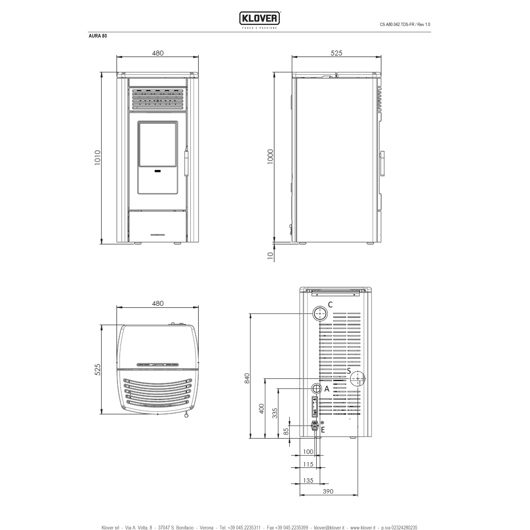 Diamètre des sortie des fumées: 80.00mm arrière