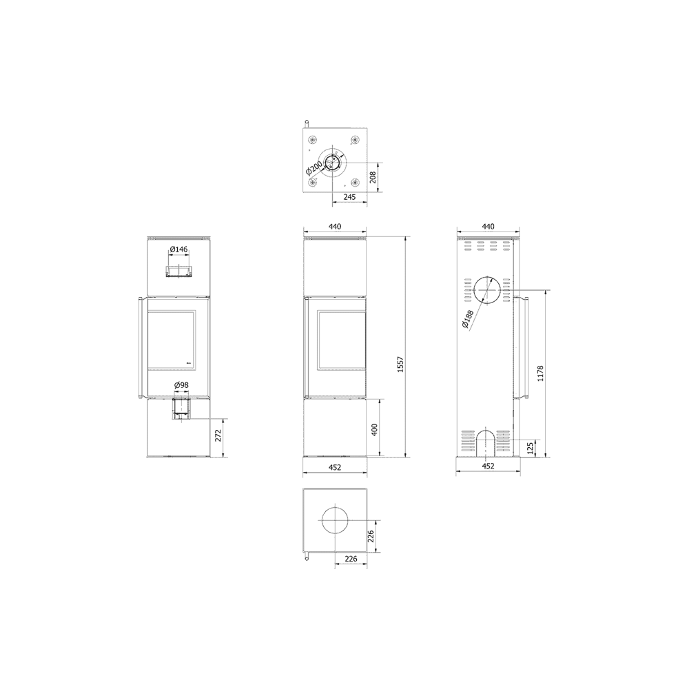 Diamètre des sortie des fumées: 150.00mm arrière ou haute